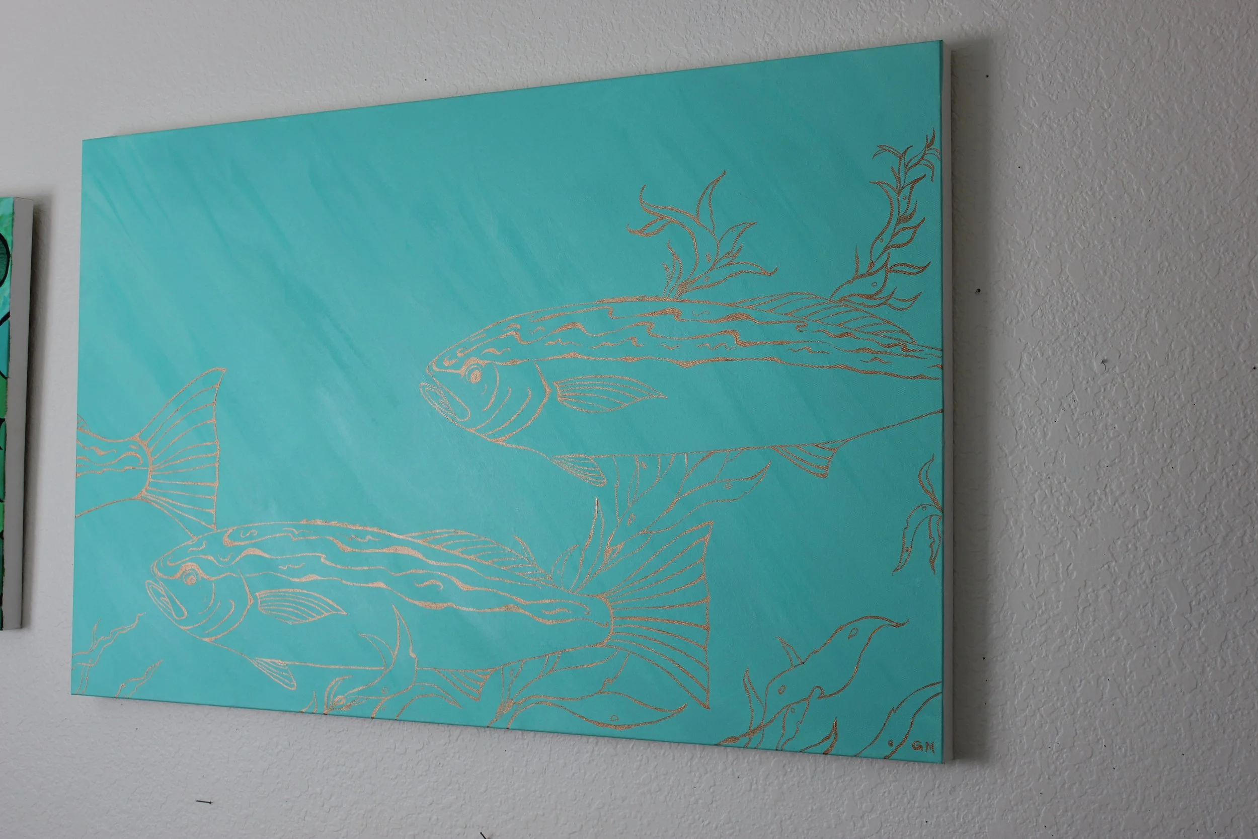 Categories: All Watercolor Fine Art Apparel All | Watercolor | Fine Art | Apparel | Home Guard Yellowtail- SOLD $1,500.00 Sold out Angel Fish- SOLD $750.00 Sold out Head or Tails $750.00 Tuna Fish- SOLD $1,500.00 Sold out Olive Green T-shirt $25.00 Light Blue T-shirt $25.00 May I Have This Dance $1,500.00 Jellyfish Delight $1,000.00 SOLD- Rad Rock Cod $1,000.00 Sold out Whale Shark Dreams $3,000.00 Tranquil Trinity $1,500.00 G Squared $750.00 SOLD- Garibaldi Party $0.00 Sold out Navy Blue T-shirt $25.00 SOLD- A Walk on the Beach $500.00 Sold out Koi Pond- Acrylic on Canvas- 24" x 30'" $750.00 Cosmic Tuna- Original Watercolor $200.00 Spiny Lobster $200.00 Don’t Look Up $750.00 Midnight Snack $200.00 Psychedelic Sea Creature- The Leafy Dragon $200.00